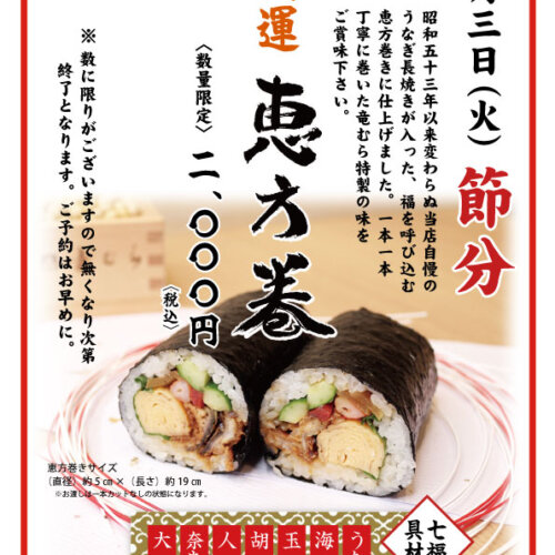 2月3日 恵方巻きのご予約のお知らせ