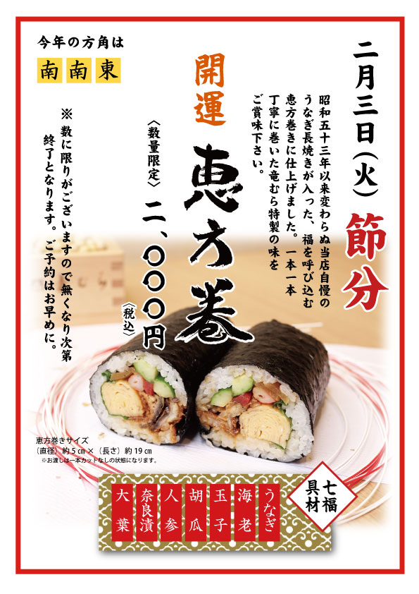 2月3日 恵方巻きのご予約のお知らせ